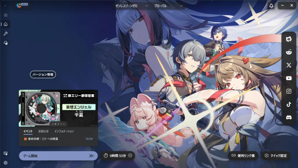 まずはランチャーの上部にあるゲームをゼンレスゾーンゼロに合わせてください。
