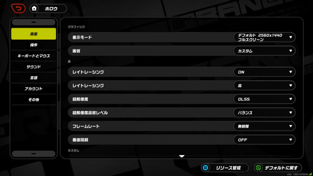 またこの設定を変更後はゲーム内からでもレイトレーシング及びDLSSの設定を変えれるのでいちいちランチャーで変更する必要はなさそうです。