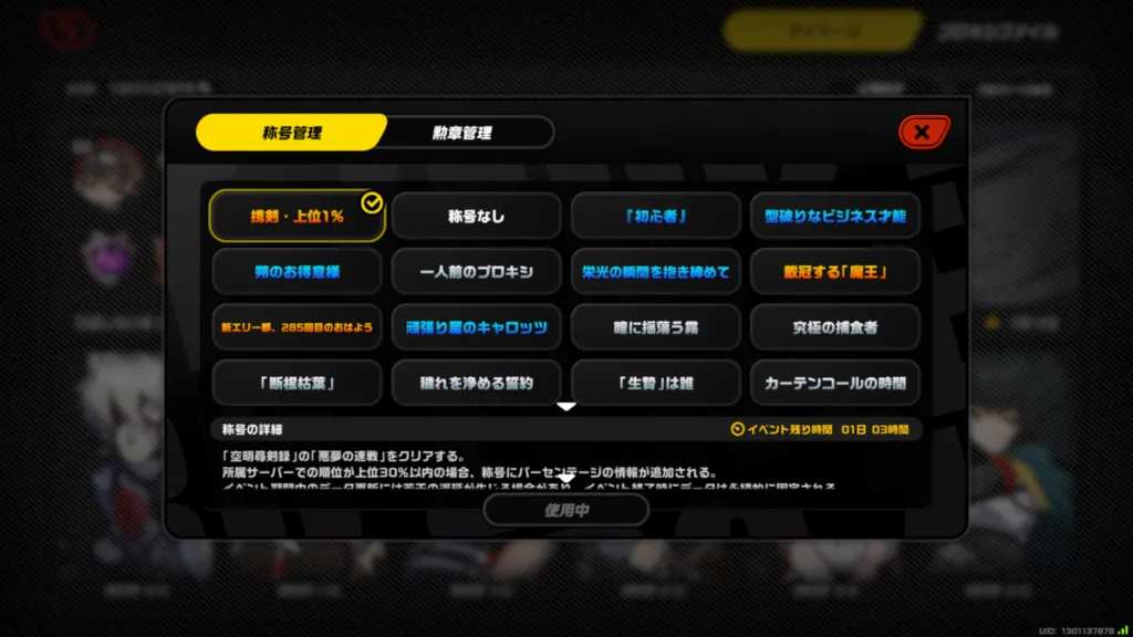 これはボス連戦におけるスコアで上位30%以内の人がもらえる称号で、イベント終了時の%で称号が確定しもらえます!
