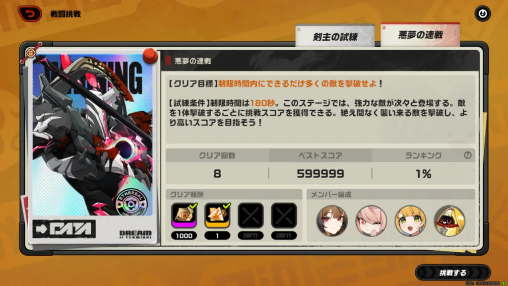 やったことはイベント限定スキルの一閃でひたすら敵を切り刻んで相手に無敵時間も反撃時間も与えずに退場させ続けるだけのスキルゲーでした()